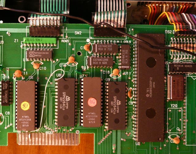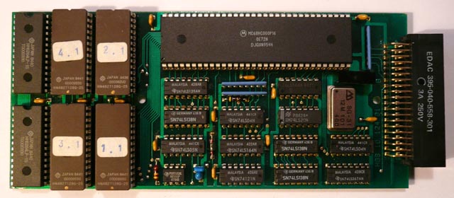 Fidelity debió fabricarlos. A la izquierda del 68000 vemos dos EPROM de 64 Kbyte