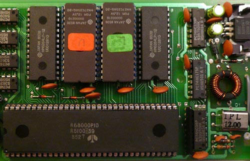 Detalle de la placa del Designer 2265. Vemos el MC68HC000P12F y
