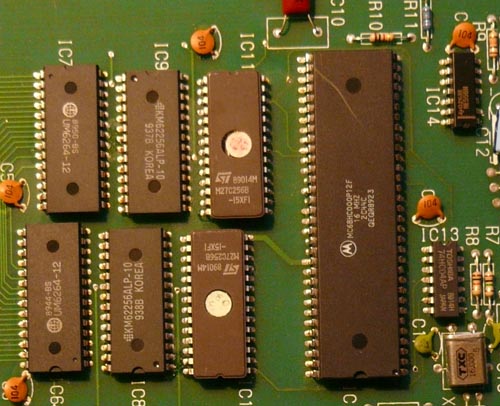 Véase en la parte izquierda los dos chips de SRAM de 8 Kbyte cada uno,