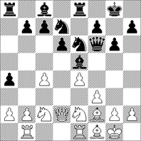 1...Axb2? Excitador inicial de nivel #4. Dividiremos esta posición en una serie de etapas progresivas para comprender la dificultad de los programas en este tipo de situaciones. La celada supone cambio de alfil por peón envenenado. 2.Txb2! Dxb2 3.Cc3! La Dama se queda sin casillas. 3...Ce5 4.Ae2! [4.Tb1 Cg5 5.Txb2 Cgxf3+ 6.gxf3 Cxf3+ 7.Rg2 Cxd2] 4...Cc5 5.Tb1 Dxb1+ 6.Cxb1 Cronometrar al desechar o con Eval < 0 |