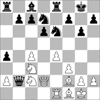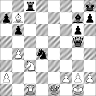 1...Dxc1! El primer ejemplo de retardadores. La posición es relativamente simple para un jugador humano. Pero el juego libre de Damas y Torres enlentece lo suficiente el caminar por los plys para que no nos sorprendan son esas respuestas relámpago de máquina. 2.Dxc1 Txc3 3.De1 Tc1 4.Dxc1 Ce2+ Cronometrar con Eval > 0 |
