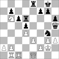 1...Cxf2!! Buen ejemplo para ver la influencia de los retardadores. Este movimiento clave se explica en torno al ply 10. Lo difícil es ver que existe compensación por el ply 8-9 y ahí es donde el programa se clava. 2.Dxf2 [2.Rxf2 Tf6+ 3.Rg1 Tf3] 2...Tf6 3.Dg1 [3.De1 Df3+] 3...De2+ 4.Rh1 Tf2 Cronometrar con Eval >= 0 |