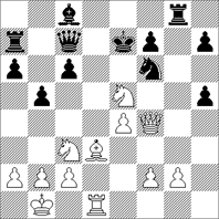Koupretchik - Short Test de Nolot 88 CB9, 1982 1.Cd5+!! cxd5 2.exd5 Short jugó 2..., Ab7? y perdió inmediatamente tras 3. Cg6+, Rd7 4. Df5+. No hay defensa a pesar de las alternativas 2..., Ce8 - Ad7 - Rf8 - Dd6 o Txg2. Todas conducen a una posición con neta ventaja blanca. 1-0 |